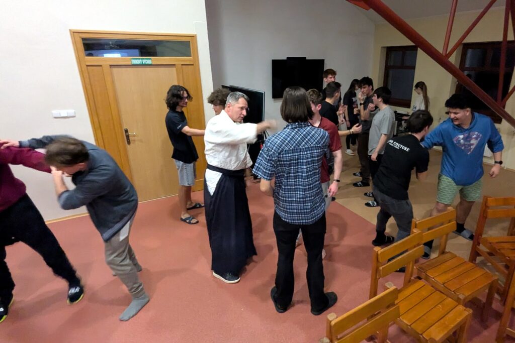 Večer patril základom Aikida pod vedením pána Šagáta – učili sme sa, ako odvrátiť útok s rozvahou a neinvazívne.